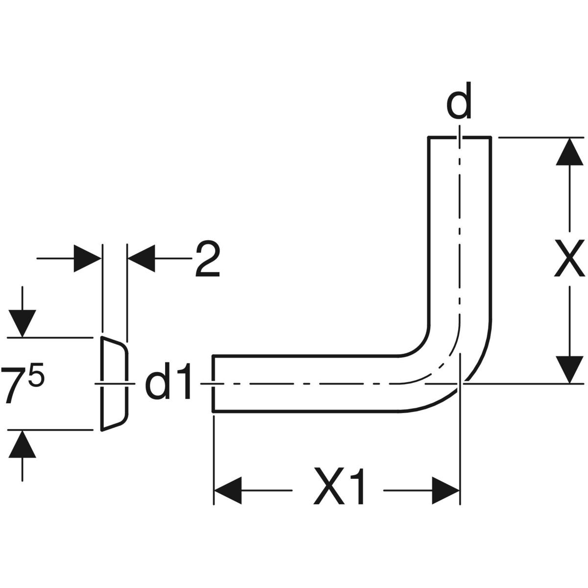 Колено смыва Geberit 90°, 28 см, для глубоких пристенных конструкций: d=50мм, X=28см, X1=4см, Черный